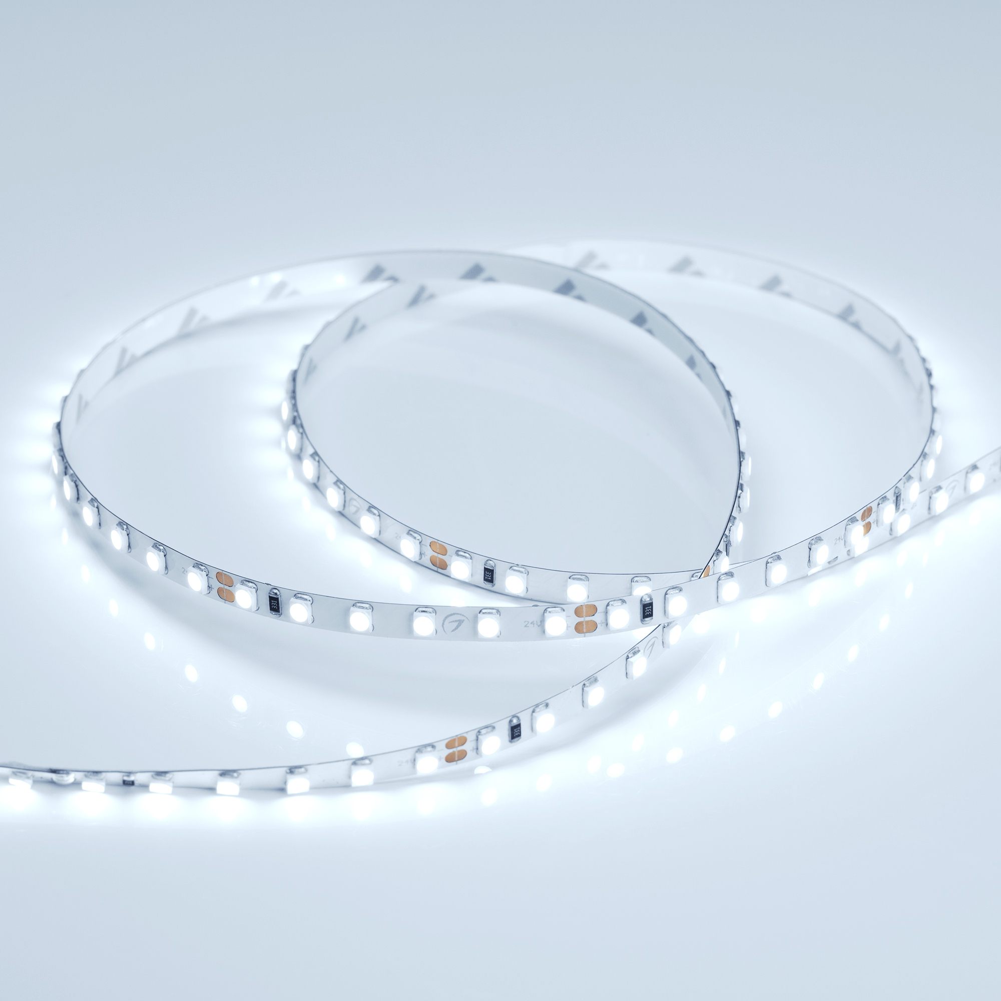 Узкая гибкая лента LUX, светодиоды 2X smd 3528, 120шт/м 600шт на 5м, белая плата 5мм, скотч 3М. Цвет СУПЕР-ХОЛОДНЫЙ БЕЛЫЙ 15000-20000К. Питание 24В, мощность 9,6 Вт/м 48 Вт на 5м, угол 120°. Размеры 5000x5x1,8мм. Мин.отрезок 50мм 6 LED. Цена за 1м. 015661