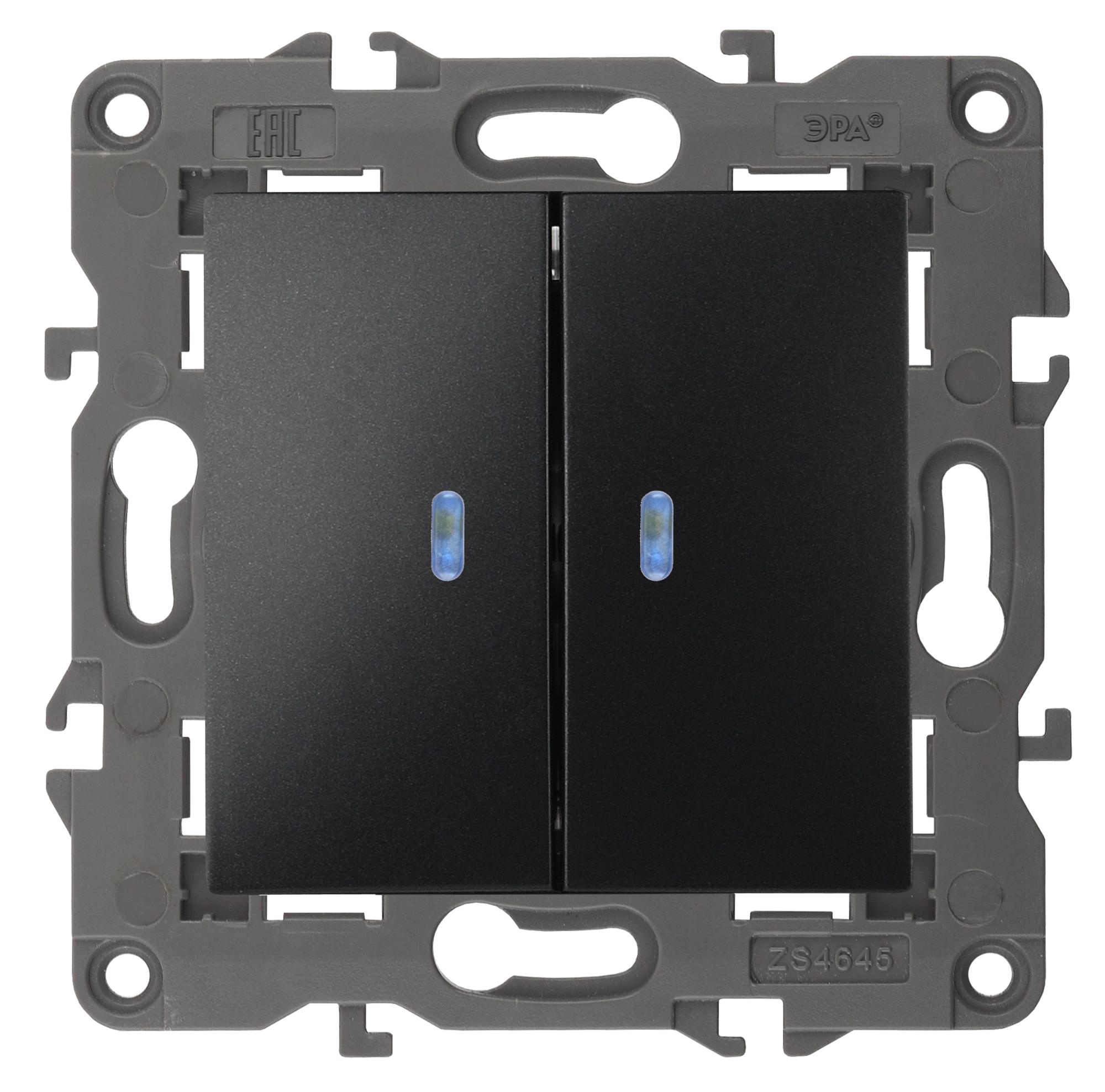 Выключатель двойной с подсветкой 10АХ-250В IP20 Elegance антрацит 14-1105-05