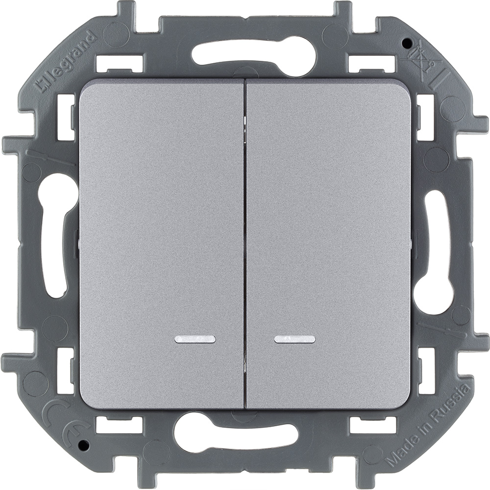 Предназначен для установки в электрических сетях жилых и общественных зданий и используется для управления приборами освещения, вентиляции и т.д. Используется для независимой коммутации двух нагрузок с одного места. Оснащен двумя светодиодными лампами для подсветки или индикации.