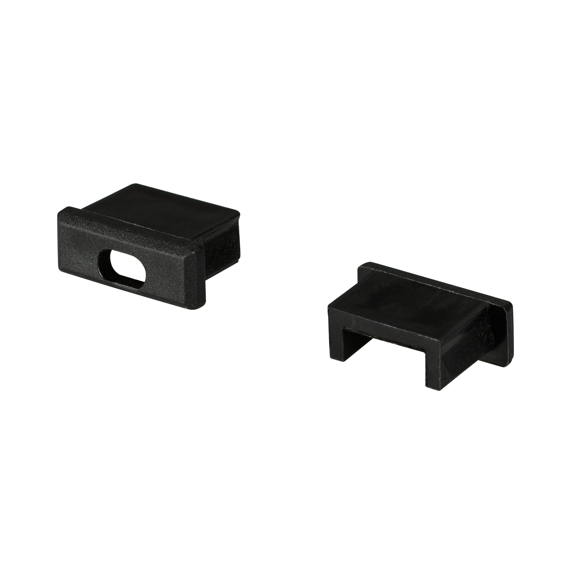 Заглушка с отверстием для профиля MIC-2000. Материал - черный пластик (PP)